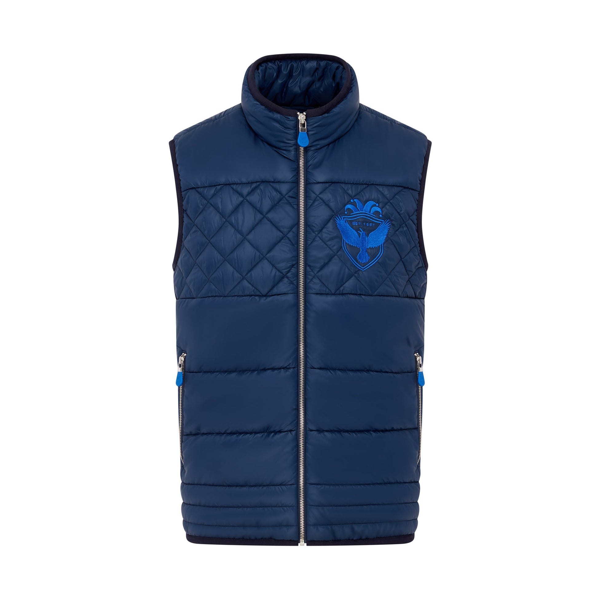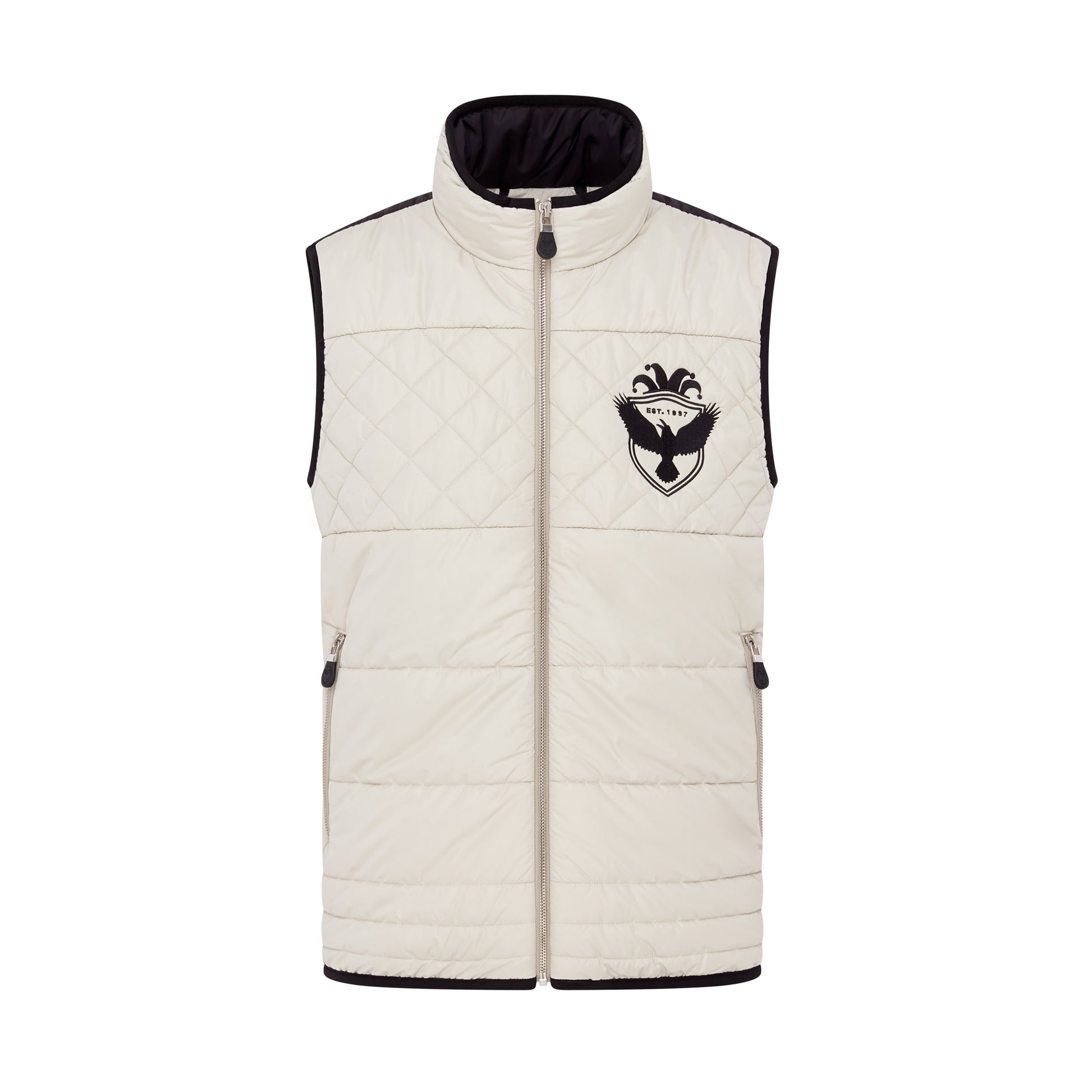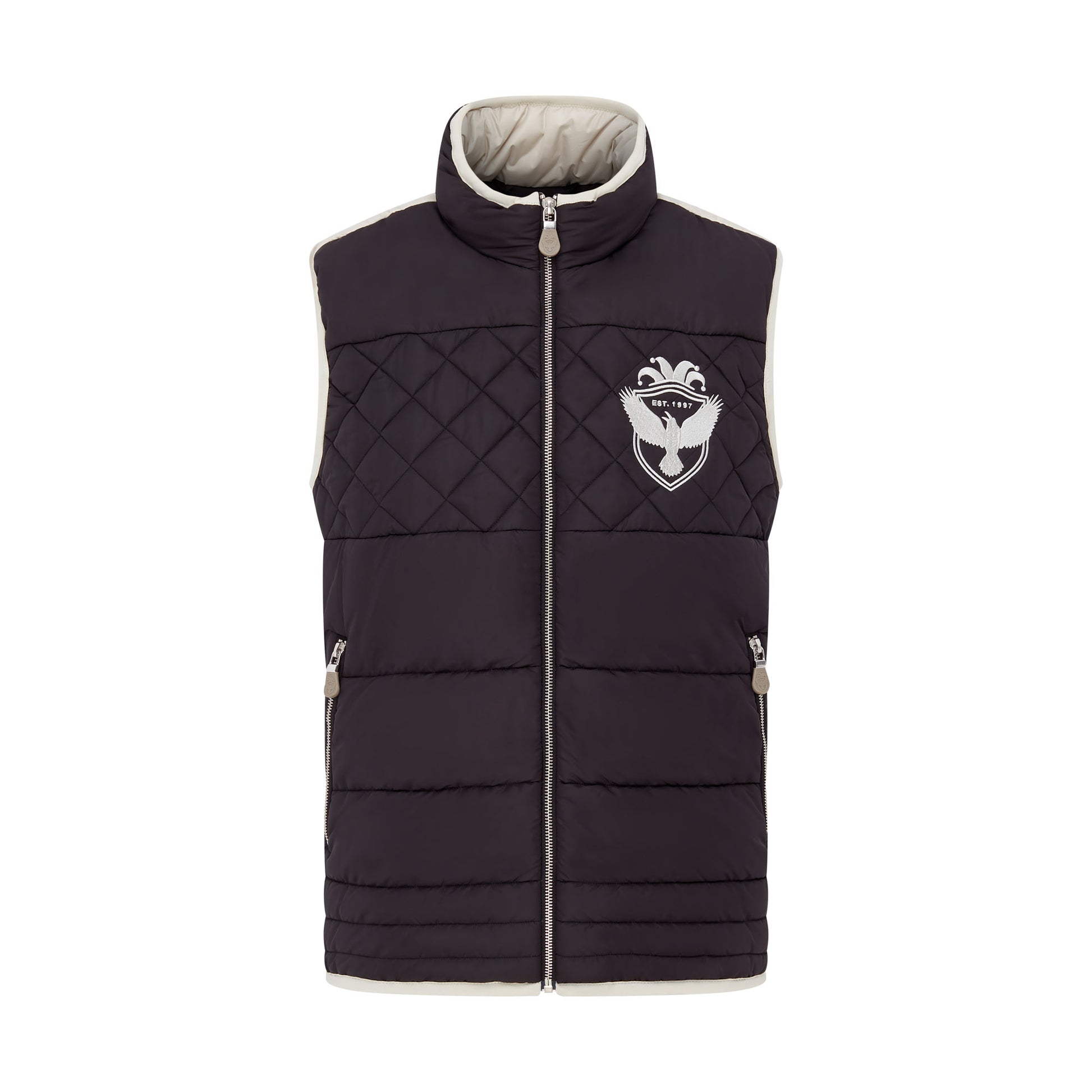 Crow and Jester’s Quilted unisex gilets. Our very own quilted design in a beautiful feel Water repellent and down proof fabric that is both warm and breathable. A double layer of recycled nylon downing for that extra warmth. Finished off with silk embroidered Logo on the breast. We use the best YKK Zips with our signature Crow and Jester branded zip pullers. Finally finished off beautifully with embroidered detail zip guard and crow design on the back.