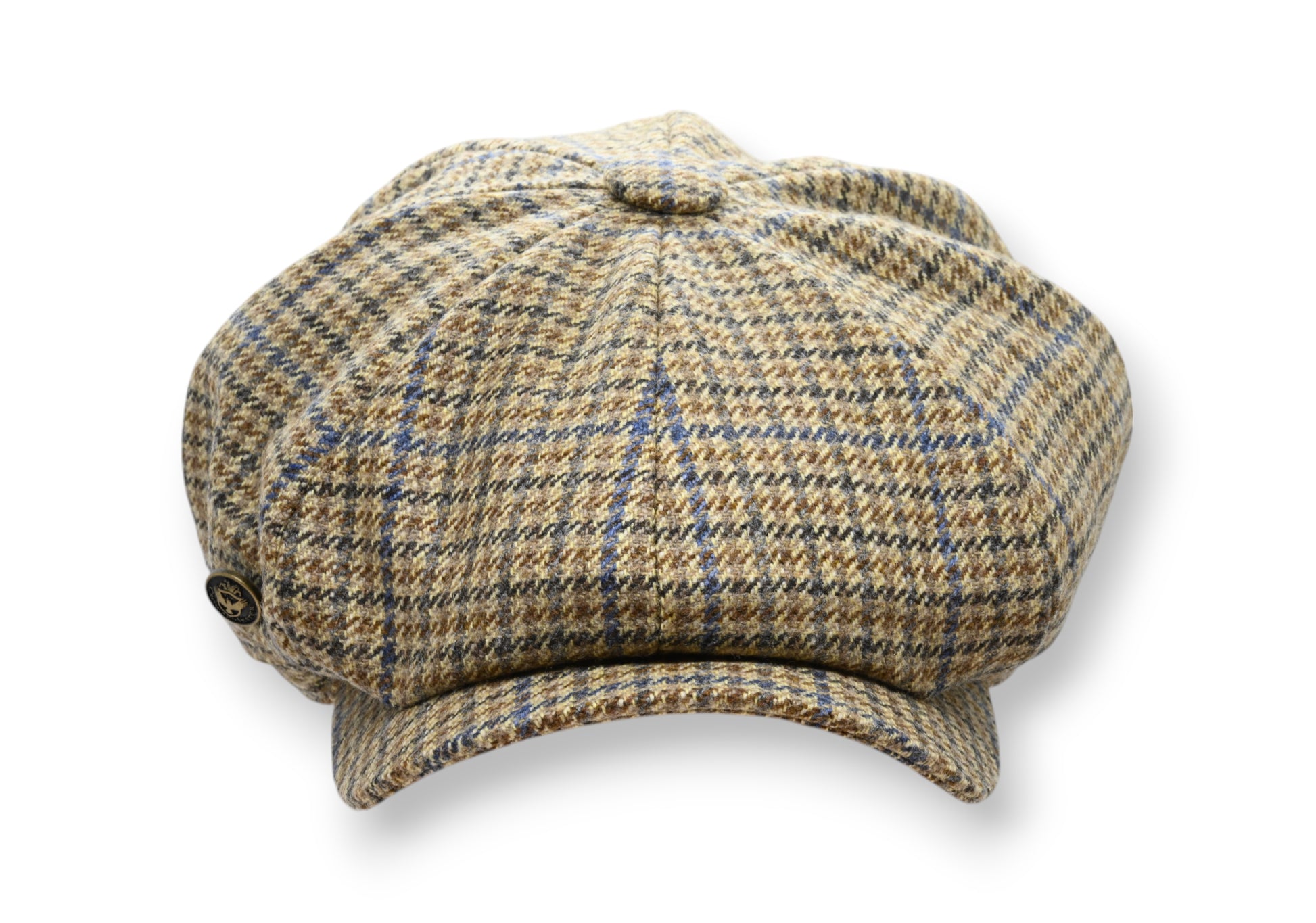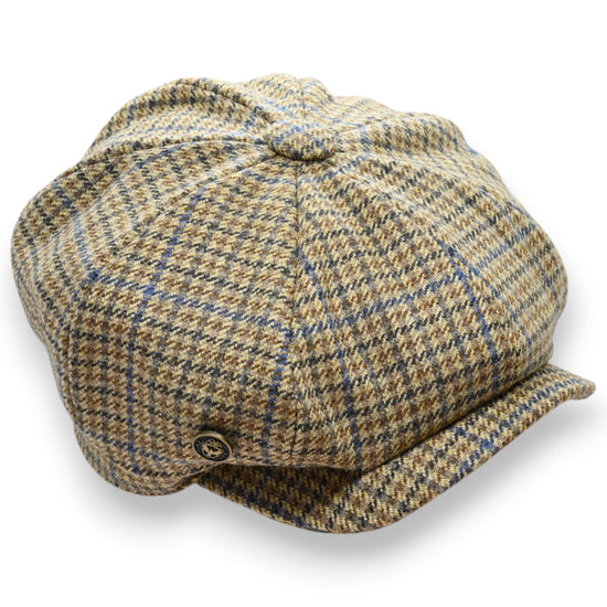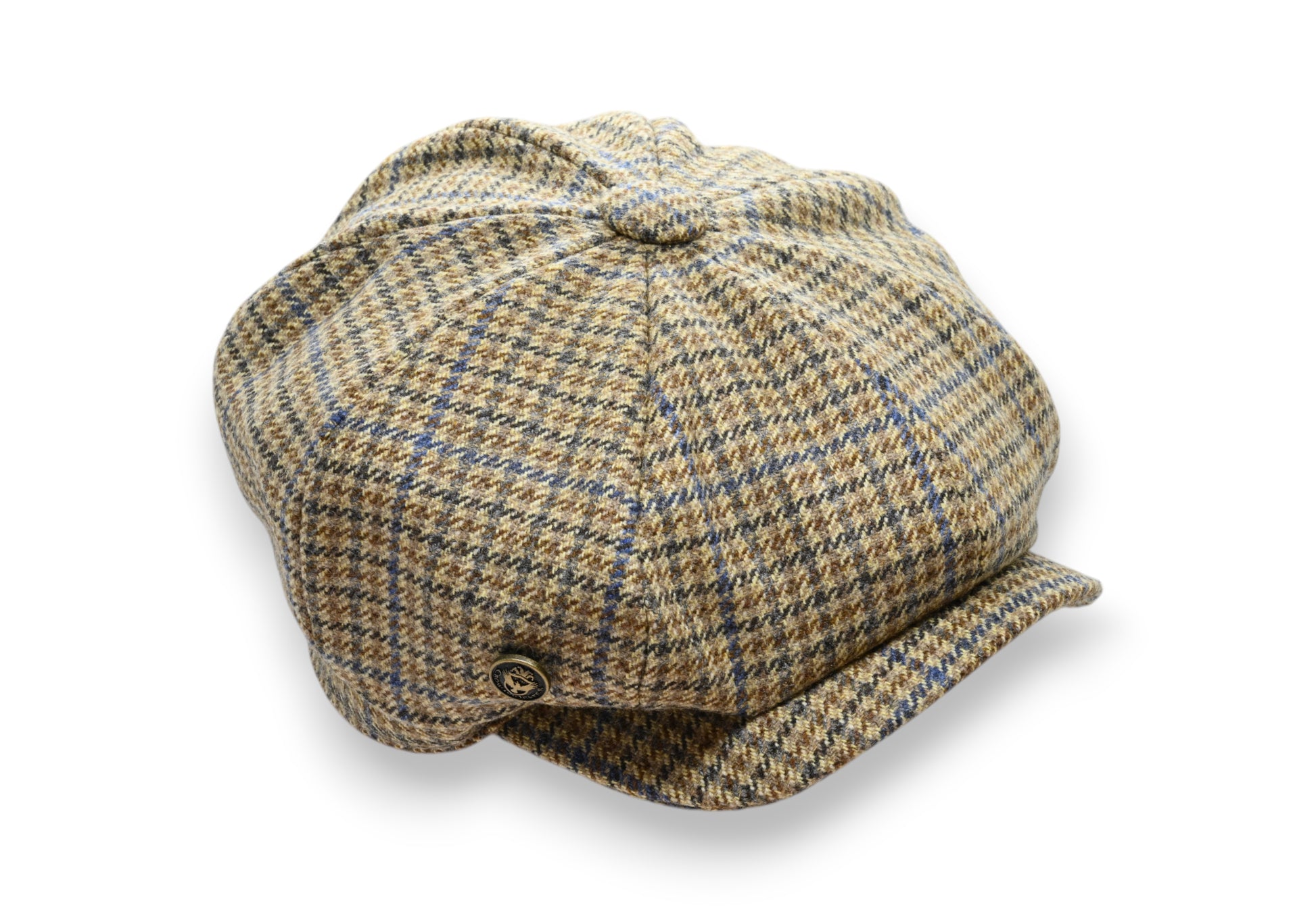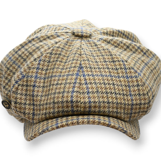 Sky Blue Windowpane Check on Grey and Black Check Baker Boy.
